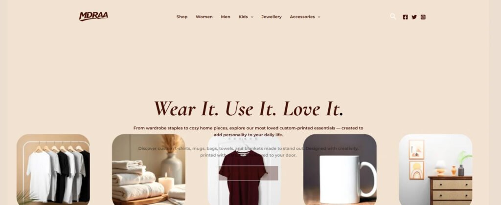 Designed a clean, minimalist storefront for a boutique e-commerce platform specializing in custom-printed essentials like apparel, mugs, and home textiles.